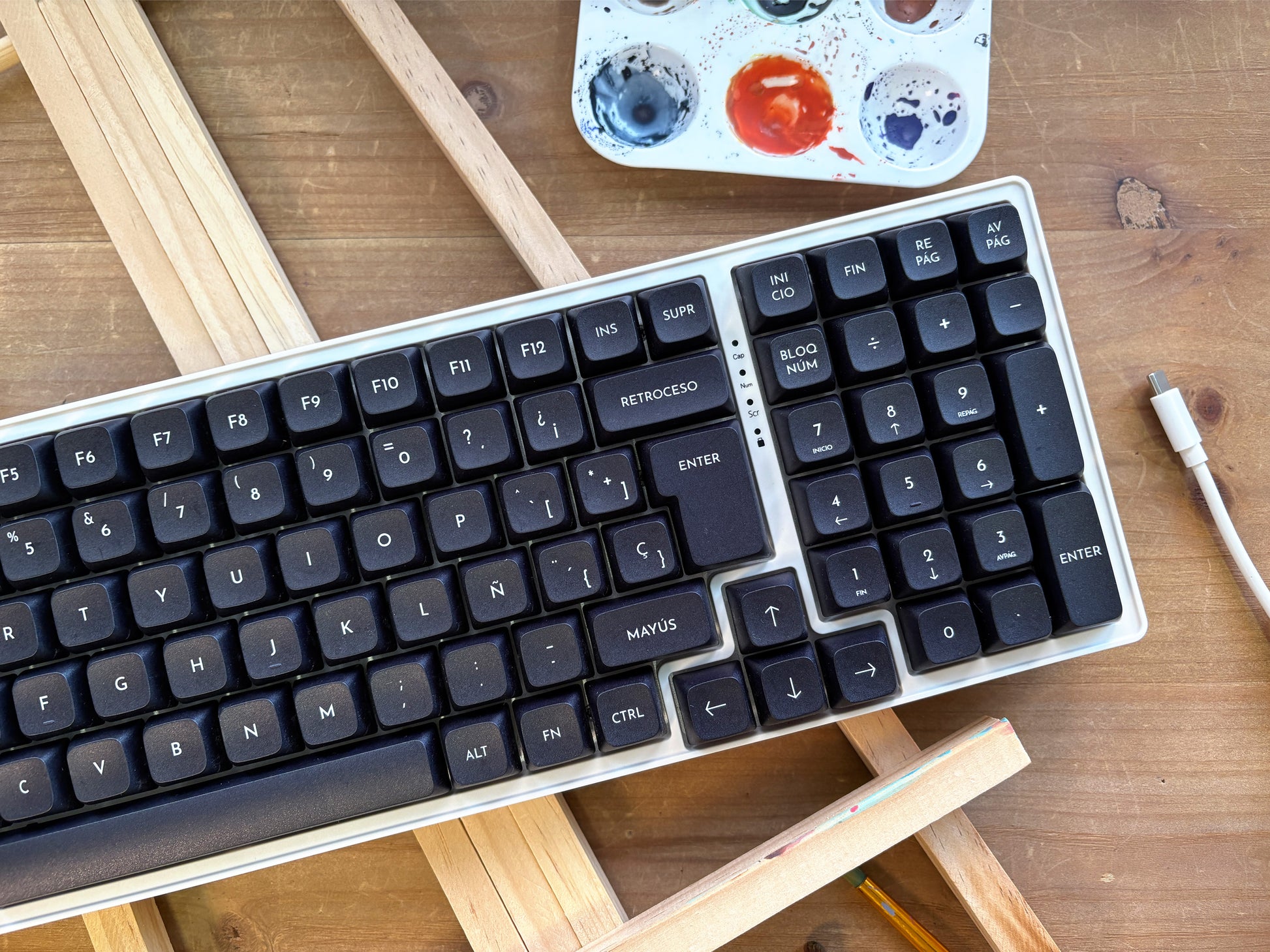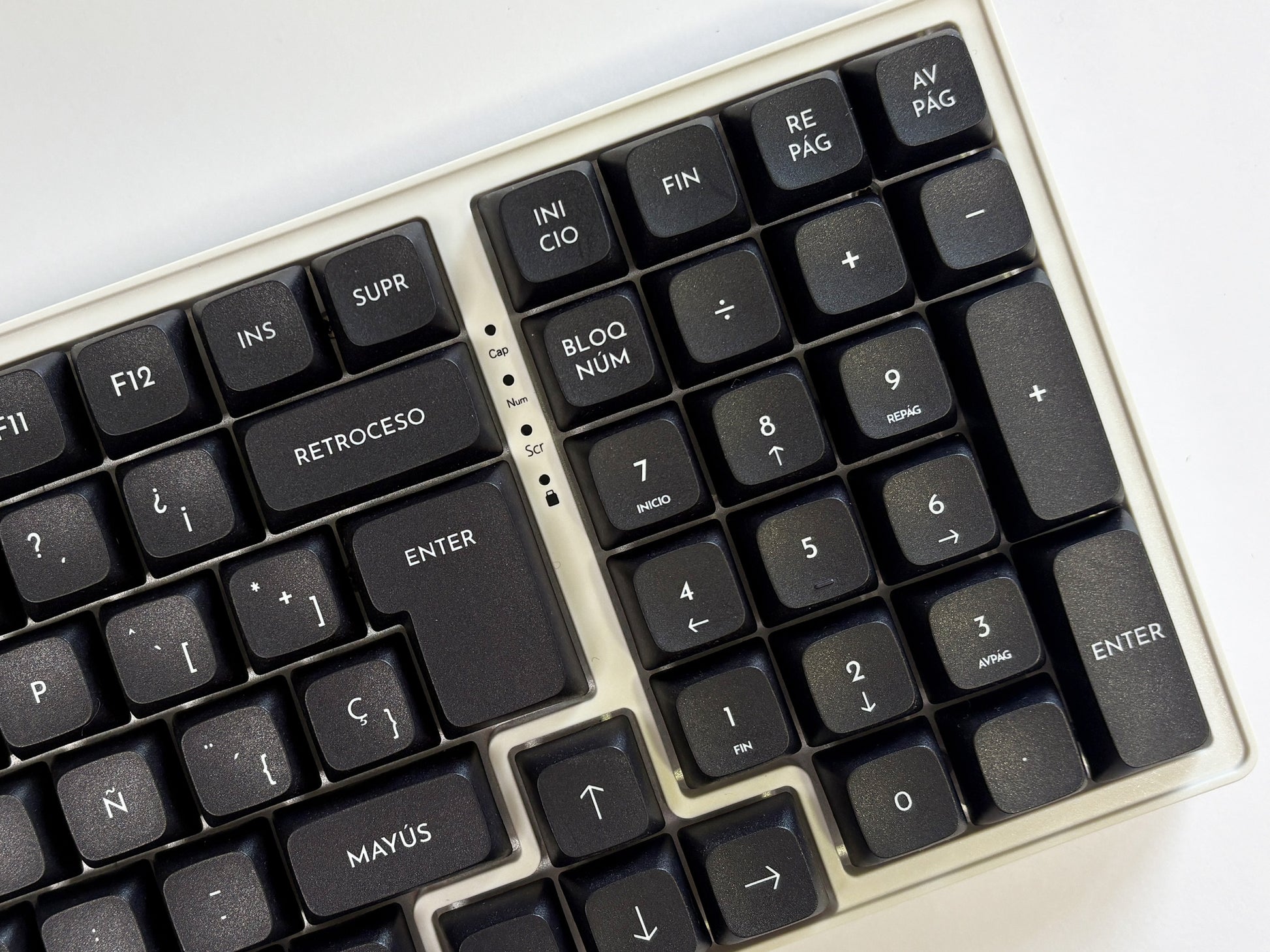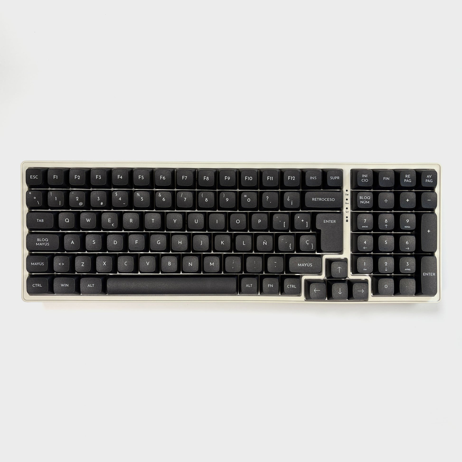 Un diseño limpio que funciona tanto tal cual como base para personalizarlo con teclas gráficas… o dejarlo completamente neutro.